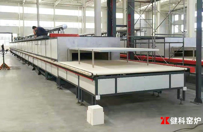 (2)隔焰輥道窯:火焰一般只,進入與窯道隔離的馬弗道中,通過隔焰板將熱量輻射給制品并對其進行加熱。